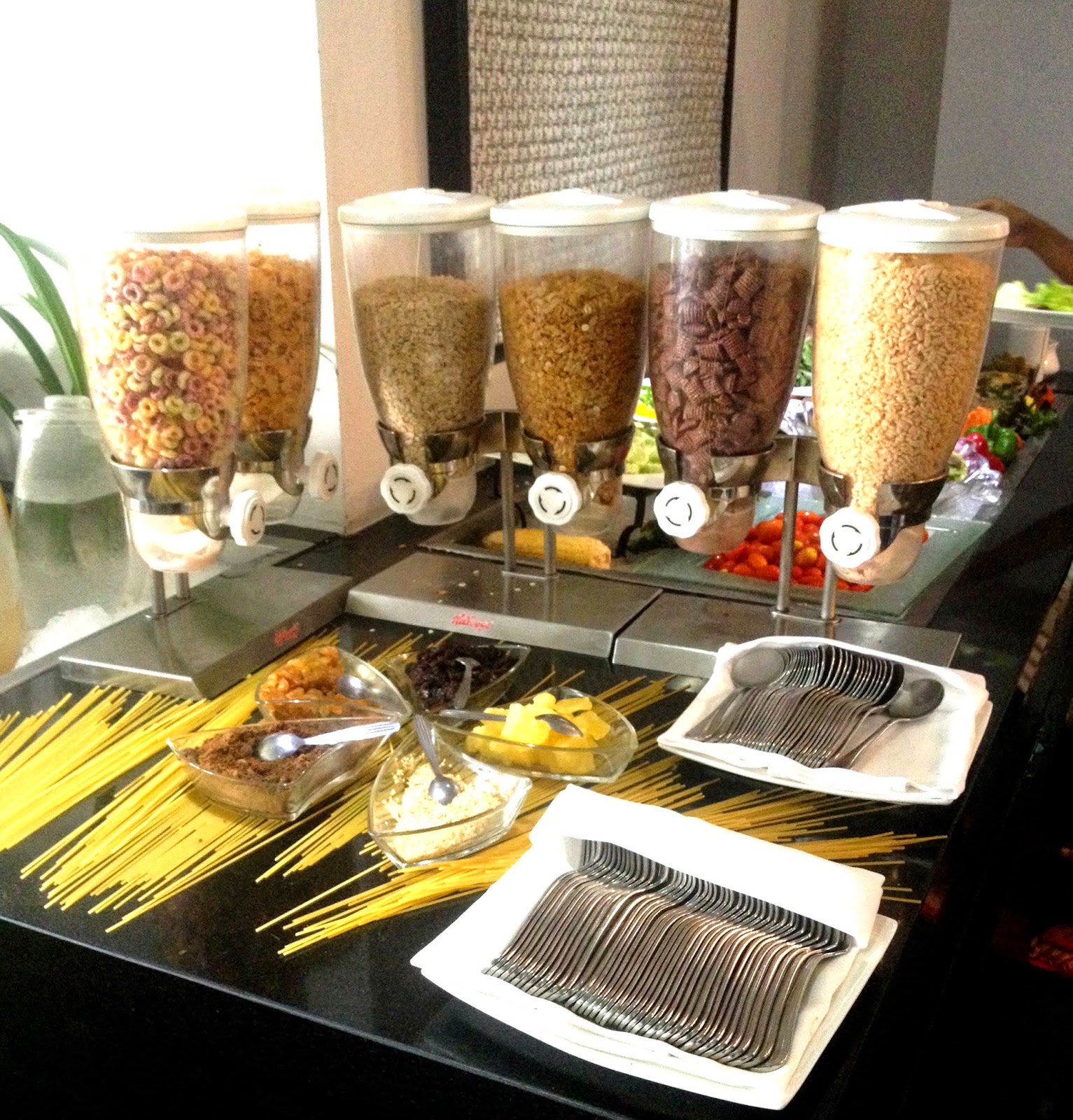 Even the cereal station had 6 different cereal types for people to choose from. Also, check out the toppings! There’s dried raisins, nuts and I think Oreo power?