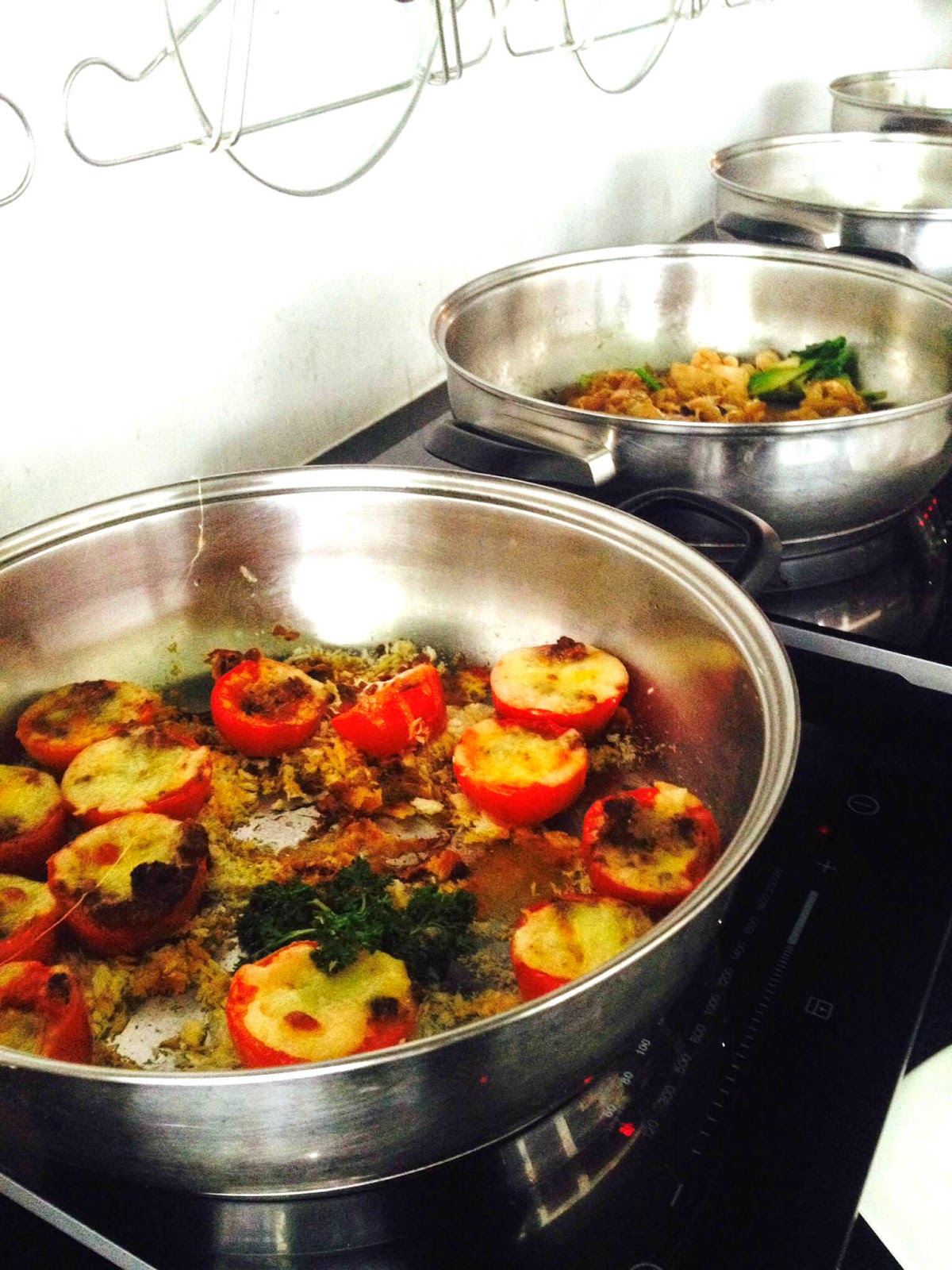 Just look at the spread for the cooked food. There’s siew mais, flat noodles, fried chicken, stuffed tomatoes and I don’t know what. The spread varies for each day.