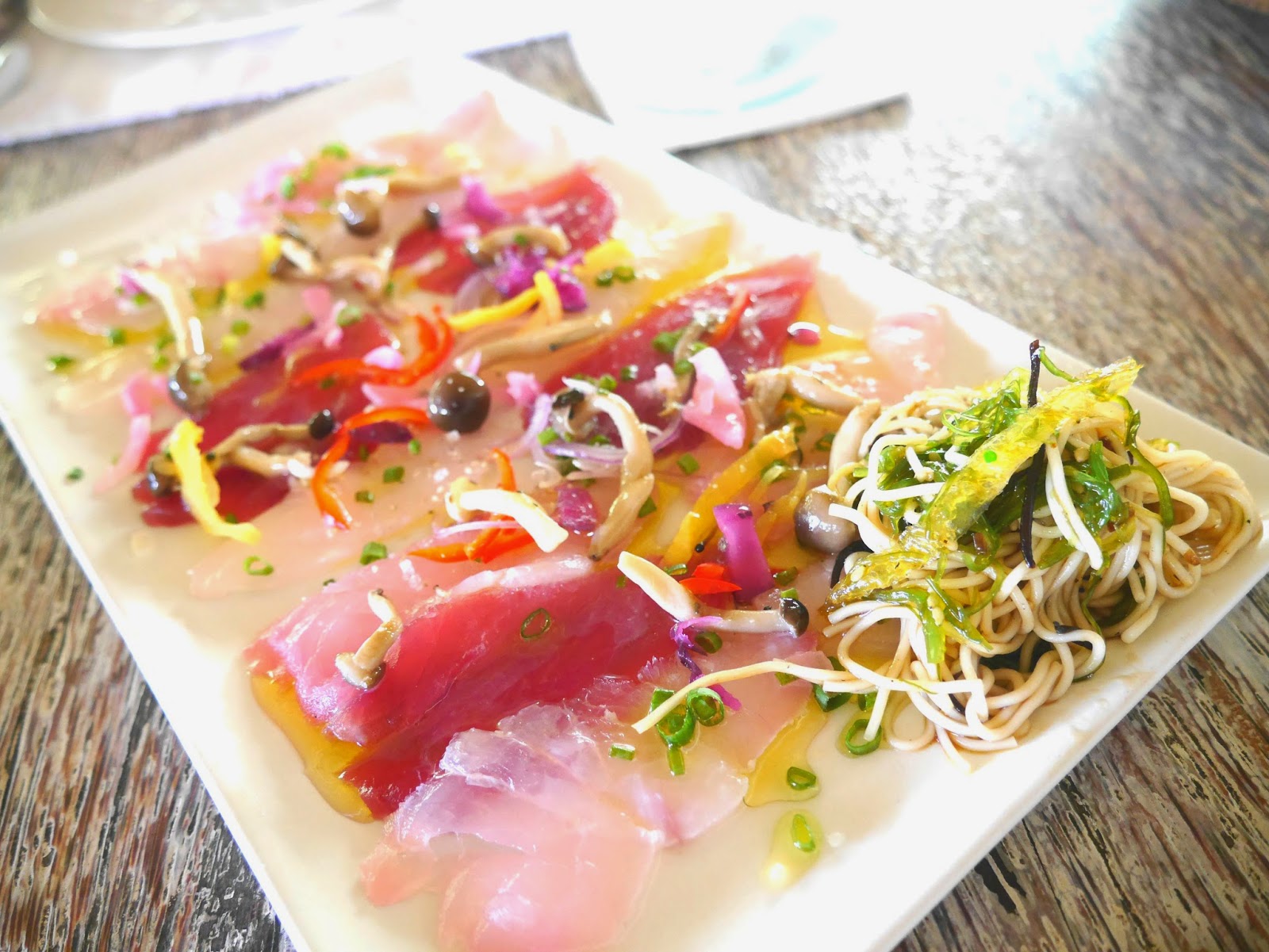 We ordered a mixed sashimi plate, rissoto, grilled hamachi and trio choco for dessert.
